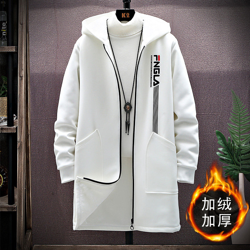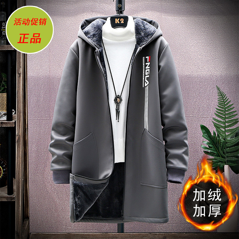 胖子毛内胆风衣男中长款大码潮牌韩版潮牌大衣秋冬季连帽加绒外套