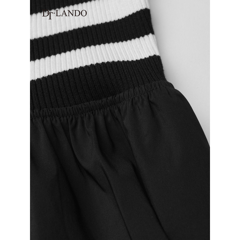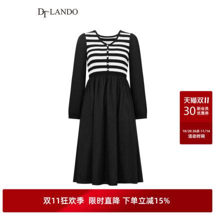 DTLANDO秋季款女装时尚百搭设计感撞色条纹拼接长袖收腰连衣裙