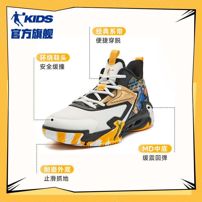 插画师系带版乔丹男童篮球鞋大童2025秋季新款耐磨战靴儿童运动鞋