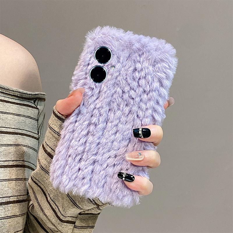 ins风编织纹适用vivoy500手机壳y300i纯色y200gt简约y100t秋冬季y50m保暖y77e毛茸茸97/y93s/y53/t35/y33毛绒