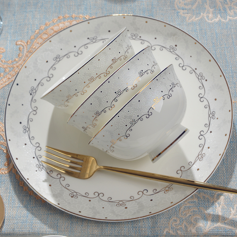 单个碗碟家用4.5寸饭盘轻奢奶油风骨瓷餐具6英寸汤碗陶瓷套装组合