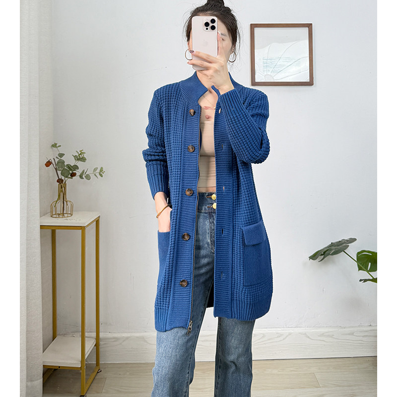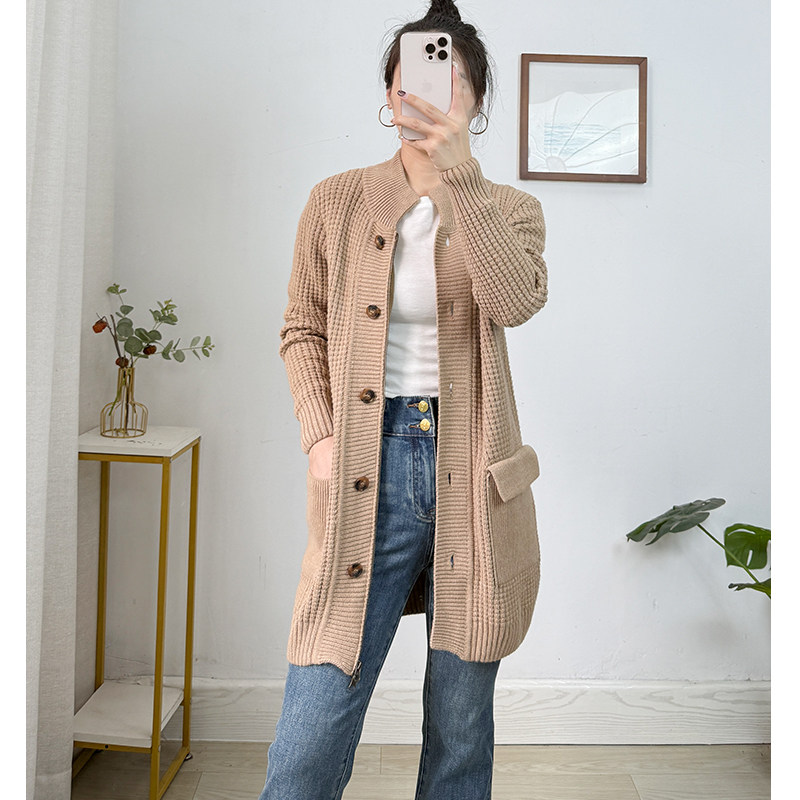 出口单羊毛+真丝+羊绒宽松中长款针织开衫毛衣女秋冬新款加厚外套