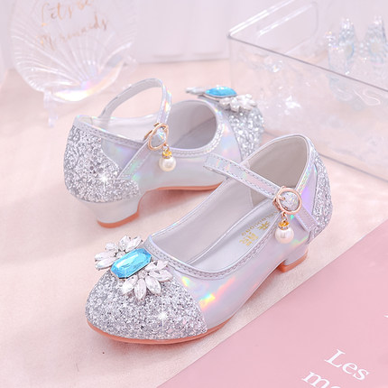 女童公主鞋2025春季新款小女孩水晶鞋爱莎宝宝单鞋银色儿童高跟鞋