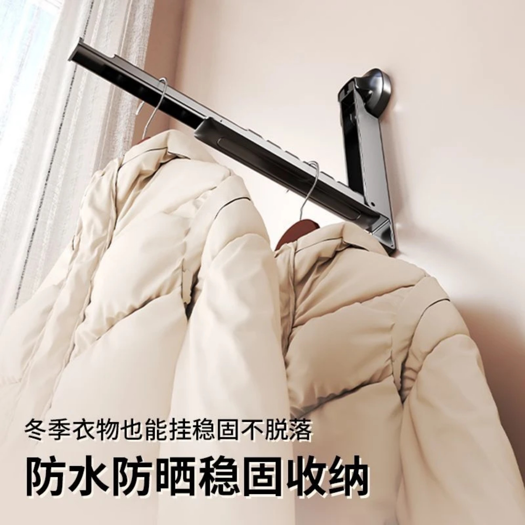 吸盘折叠晾衣架免打孔室内家用阳台隐形伸缩晾衣杆飘窗晒衣服神器