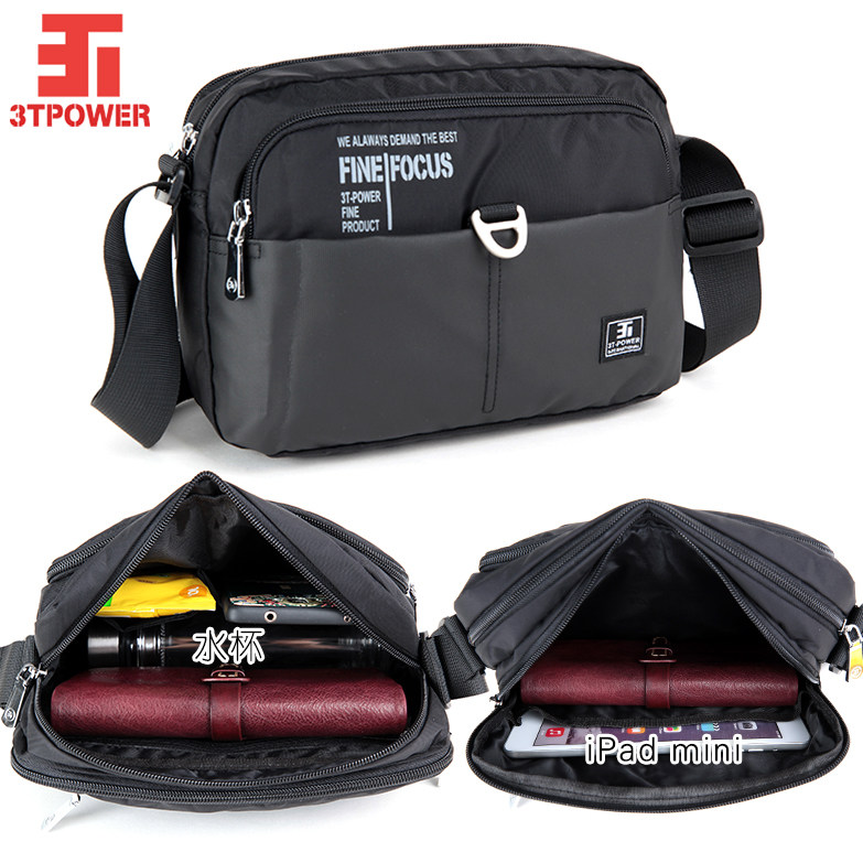 香港3T横款斜挎包男女多隔层防水尼龙牛津布韩版时尚单肩中年包包