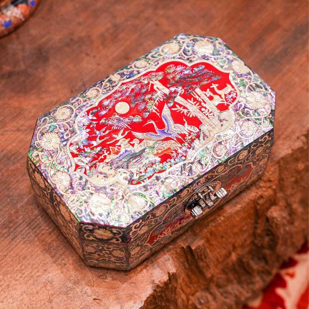 螺钿首饰盒漆器珠宝饰品收纳盒木质妆奁陪嫁三金嫁妆结婚礼物高档