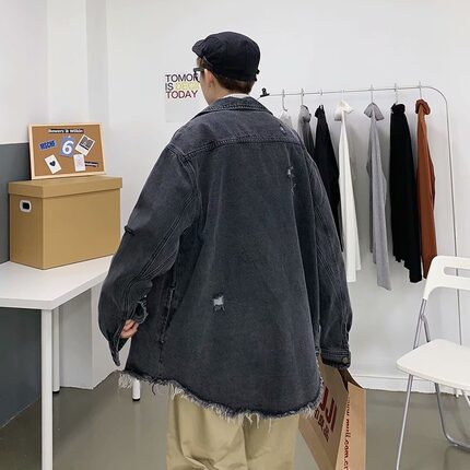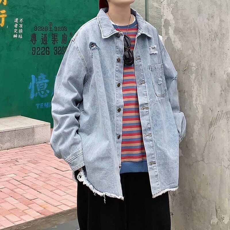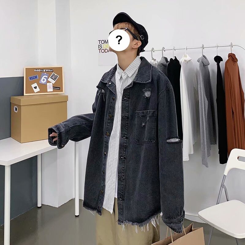 美式复古破洞牛仔外套男春秋潮
