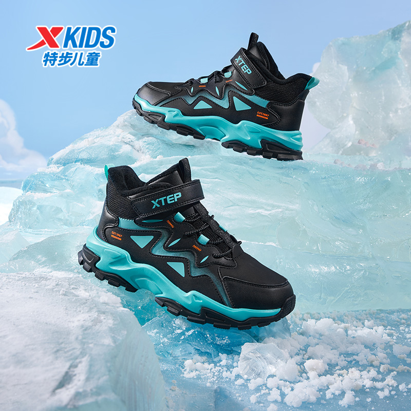 特步儿童冬季新款中大童鞋男童二棉鞋加绒棉鞋儿童运动防滑休闲鞋