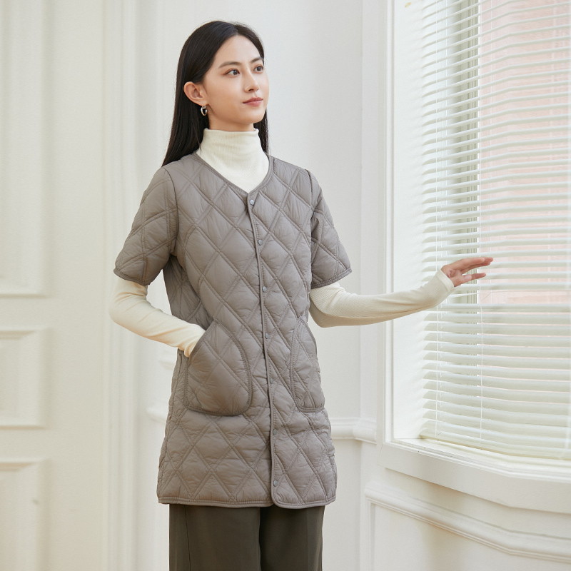 轻薄羽绒棉中长款短袖棉衣外套女秋冬装打底棉服内胆保暖防寒棉袄