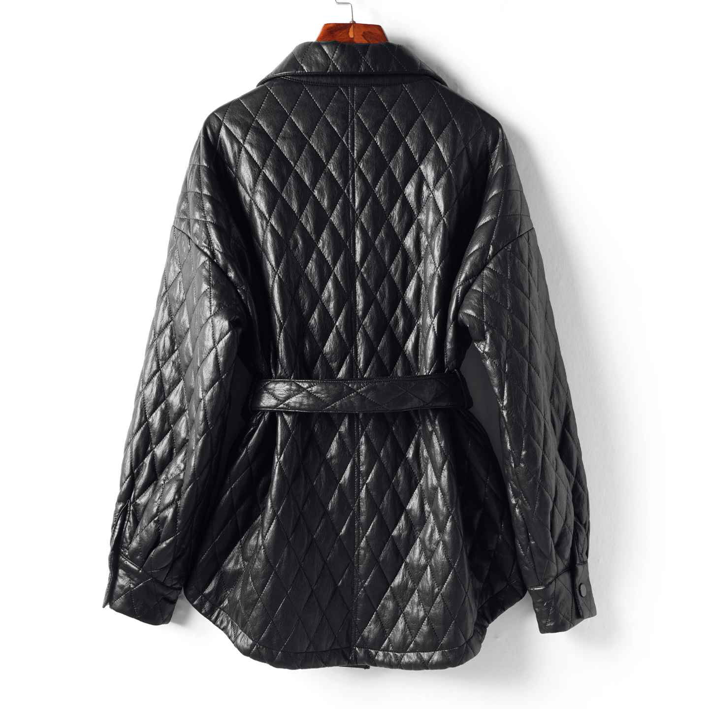 真皮衣女常规翻领系带黑色显瘦皮夹克冬季新款韩版时尚绵羊皮外套