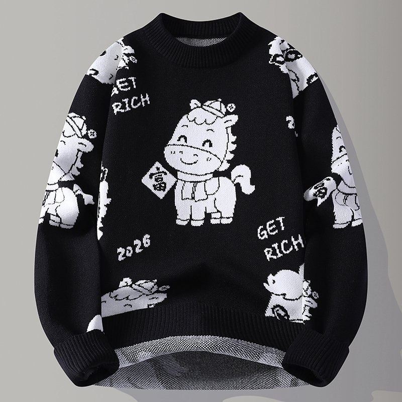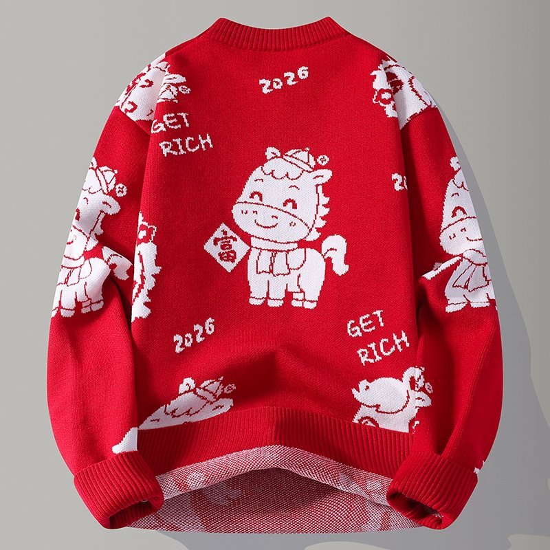 红色毛衣男款本命年冬季2026马年喜庆过年线衣内搭打底针织衫以純