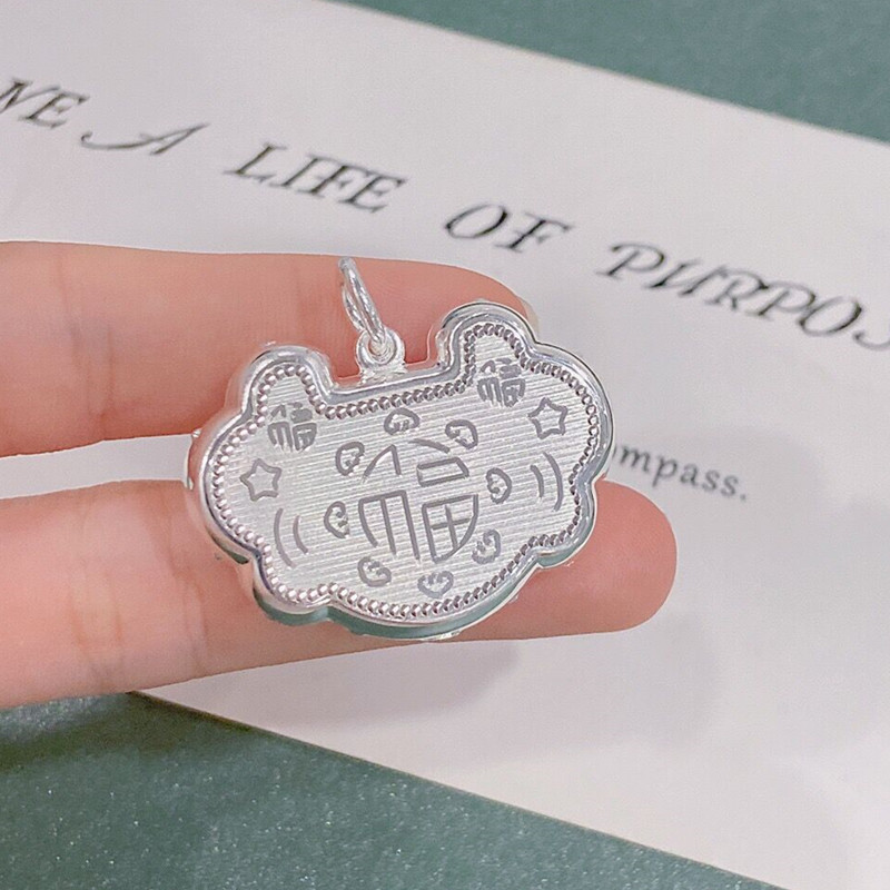香港正生平安百福男女宝宝小孩纯银锁包项链足银999满月周岁礼物