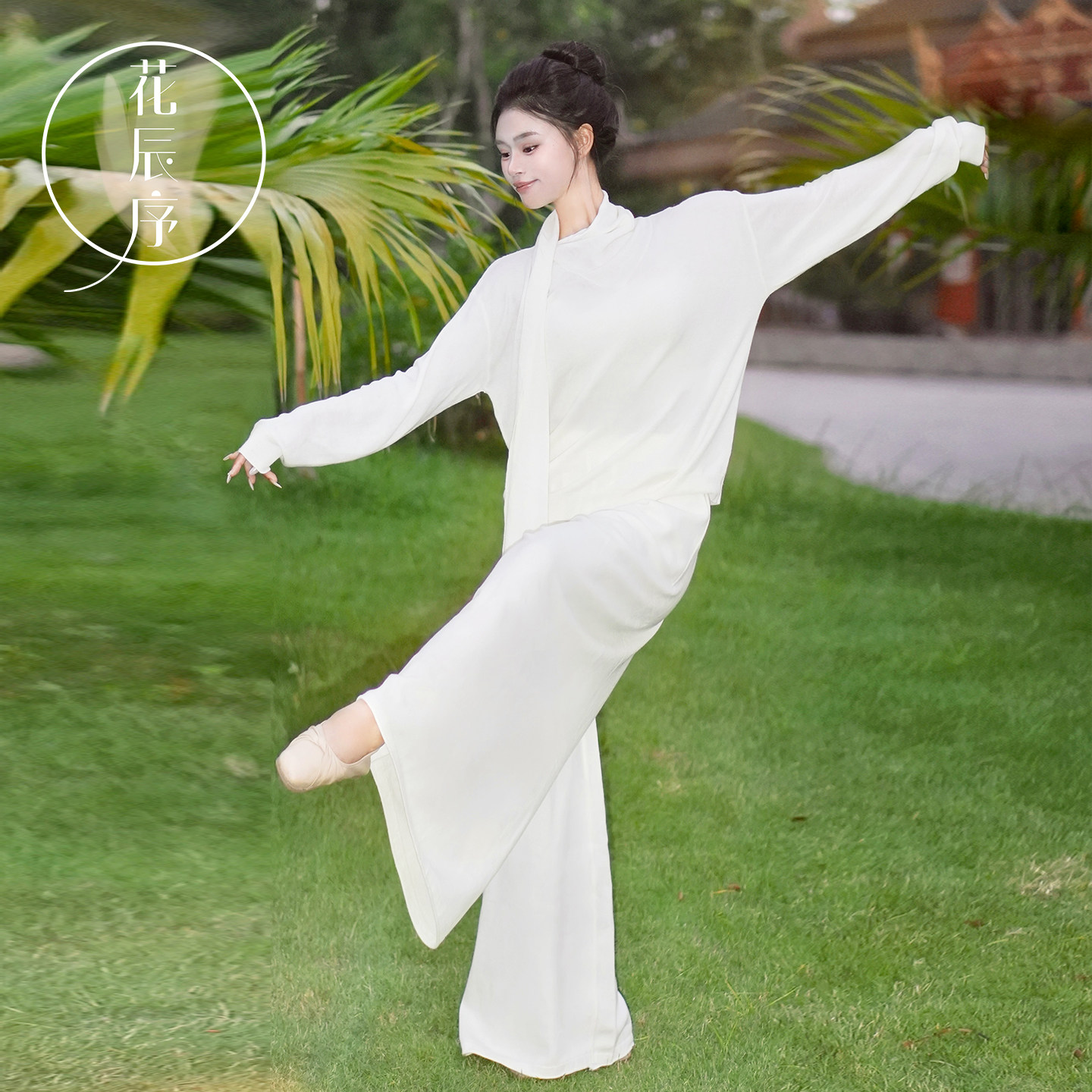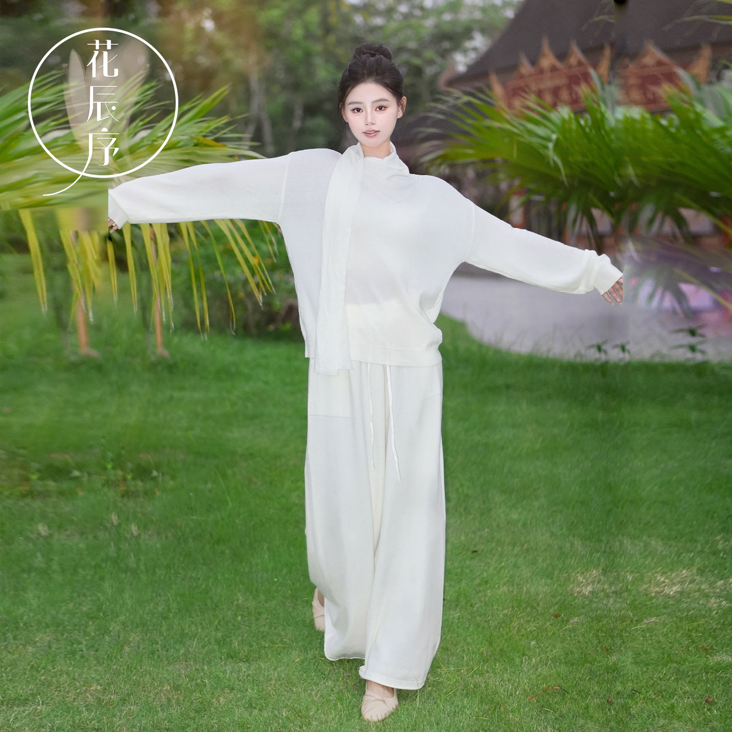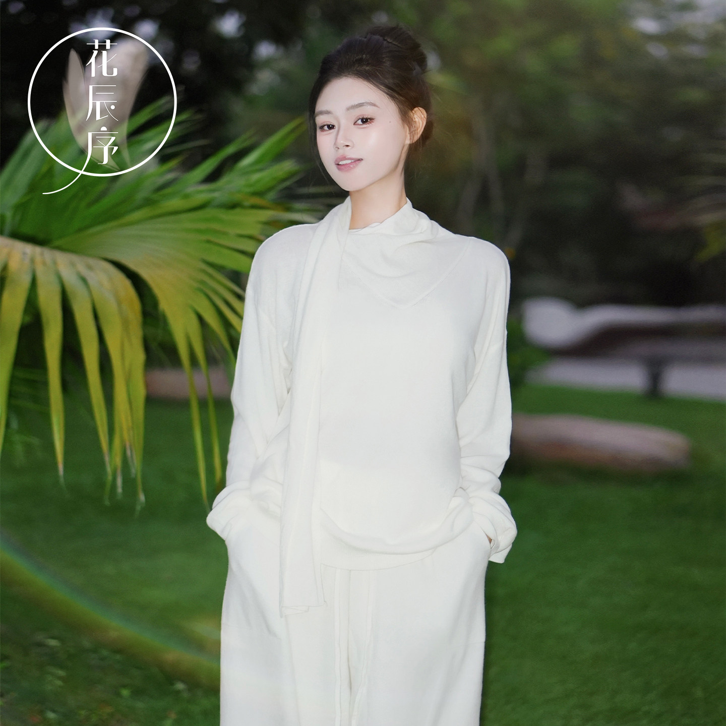 花辰序秋冬温柔气质穿搭高领围脖长袖针织上衣女宽松阔腿裤两件套