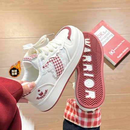 回力加绒女鞋冬季厚底小白鞋女2025新款增高板鞋百搭学生二棉鞋女