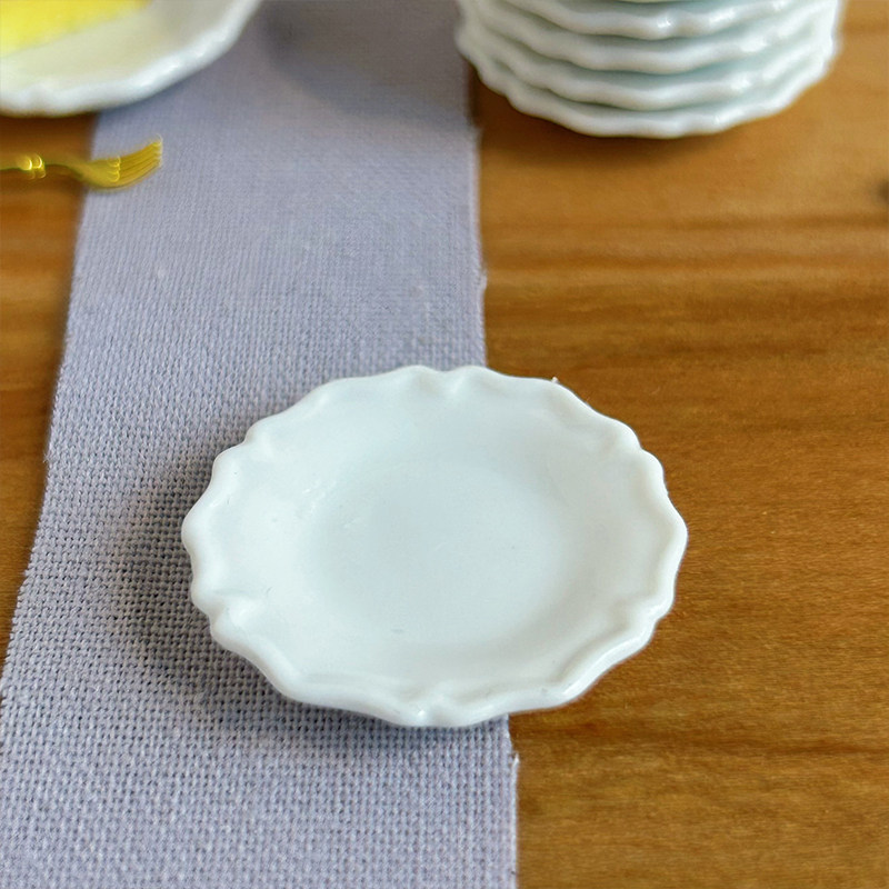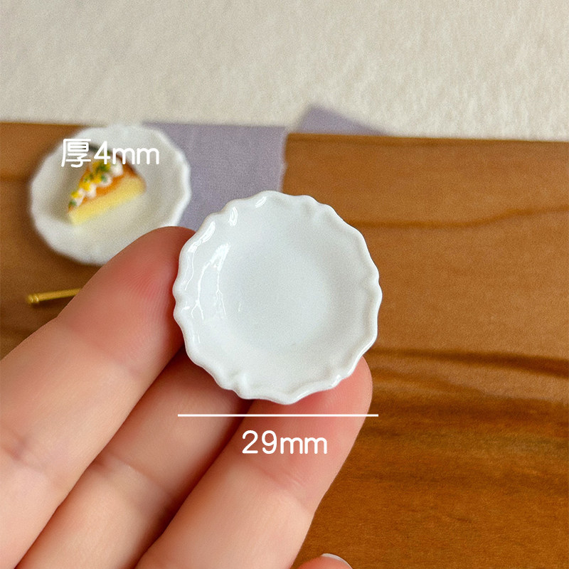微缩白色餐碟玩具模型 娃娃屋配件迷你陶瓷碟子29mm菜盘菜碟C3012