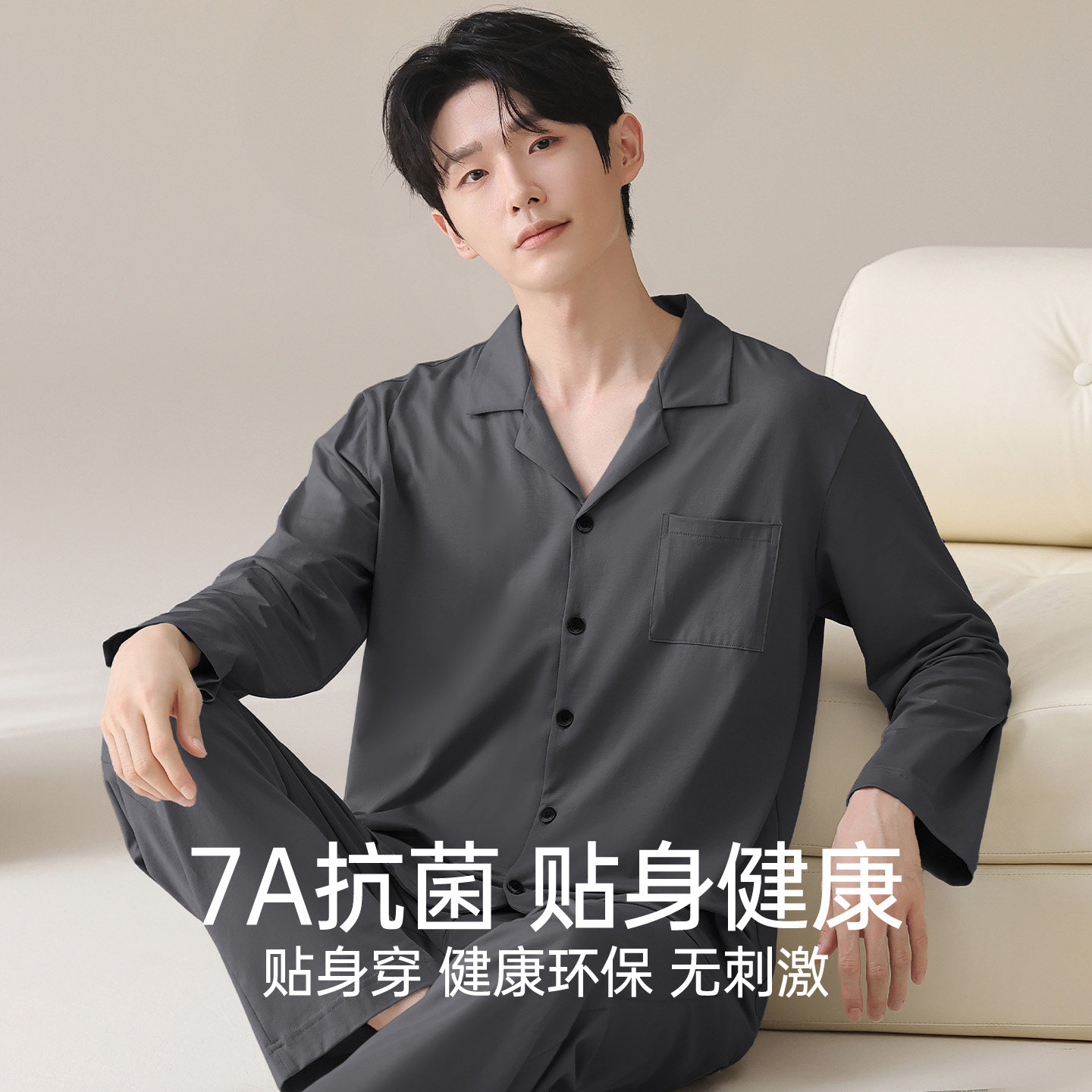 恒源祥男纯棉抗菌防螨睡衣家居服