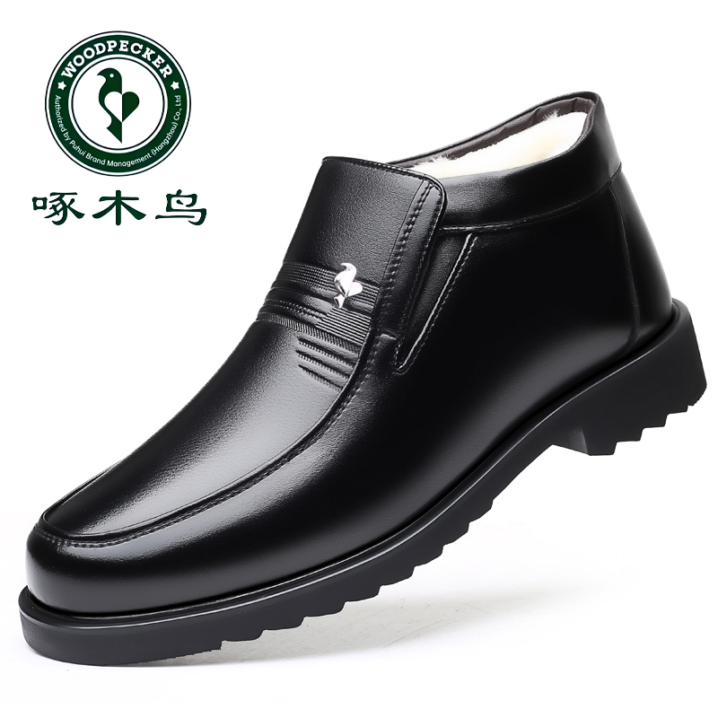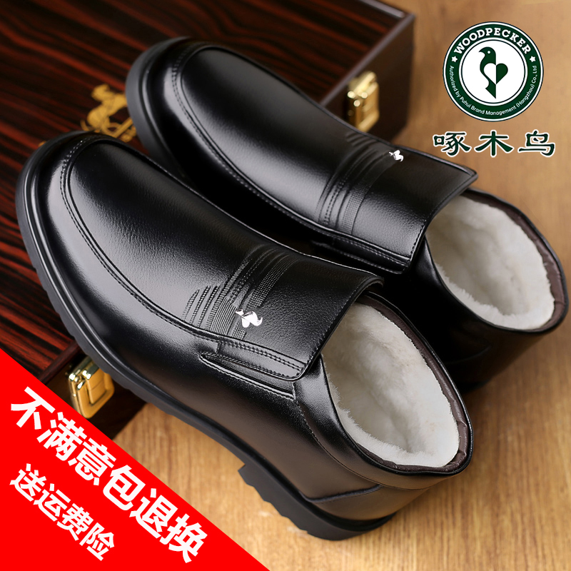 啄木鸟棉皮鞋男士冬季加绒保暖中老年软底防滑爸爸鞋羊毛加厚棉鞋