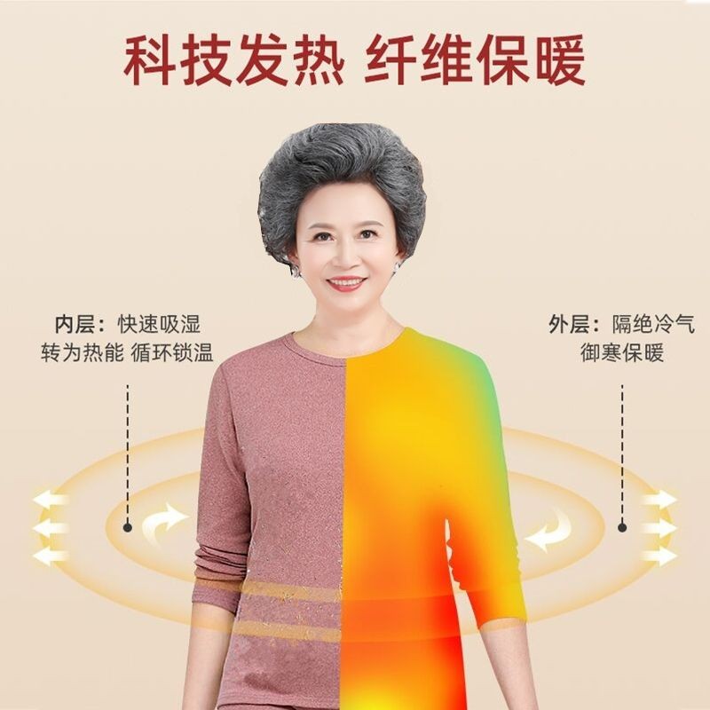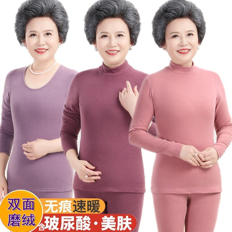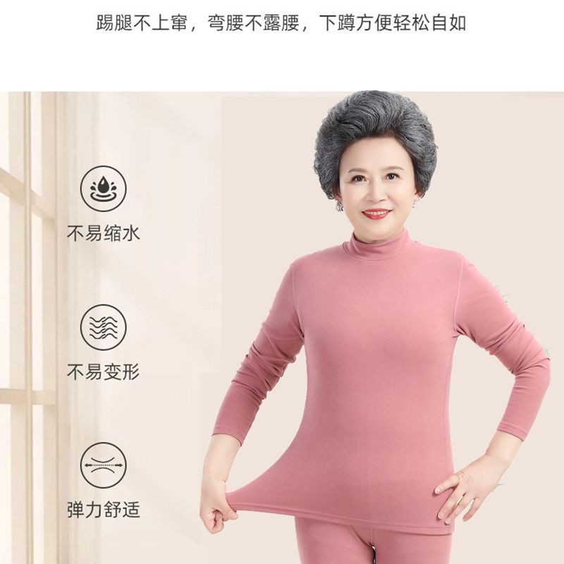 中老年人老人德绒保暖内衣中高领妈妈装秋衣秋裤女式棉毛衫老太太