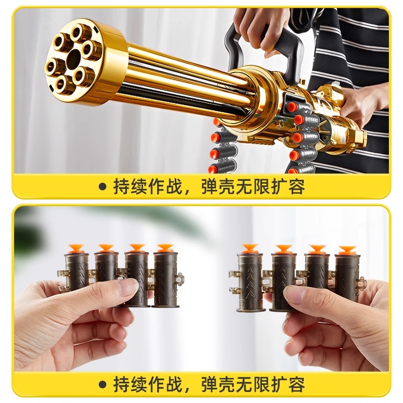 黄金加特林电动连发软弹枪仿真抛壳机关枪儿童男孩玩具枪重机枪