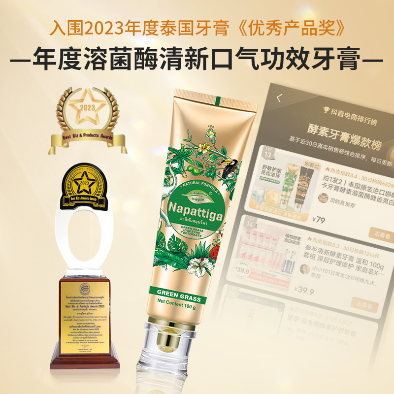 娜帕蒂卡溶菌酶牙膏泰国进口不含氟抗敏去黄祛渍亮白清新口气
