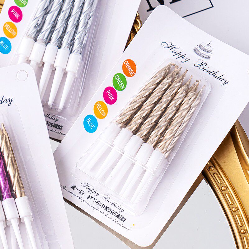 儿童生日蜡烛网红个性装饰蛋糕烘焙创意浪漫派对无烟螺纹金色蜡烛