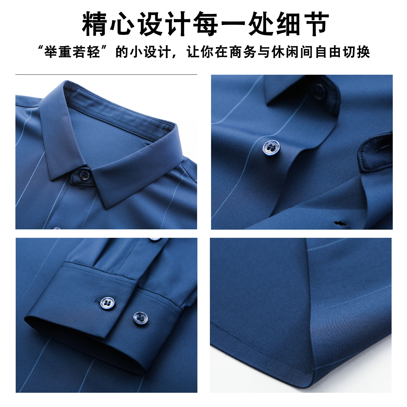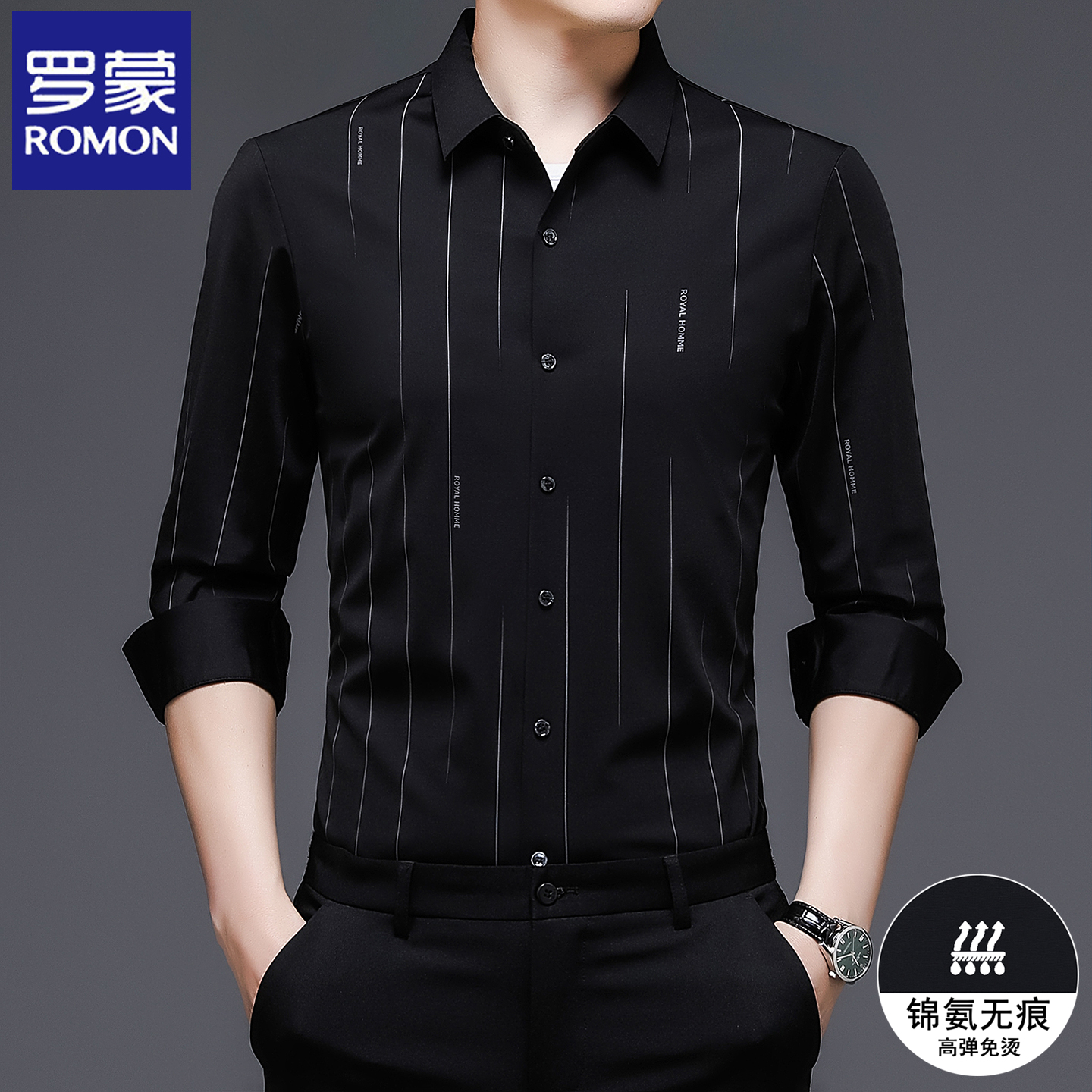 罗蒙男士长袖衬衫春秋季新款中年高端条纹免烫商务休闲男装衬衣服