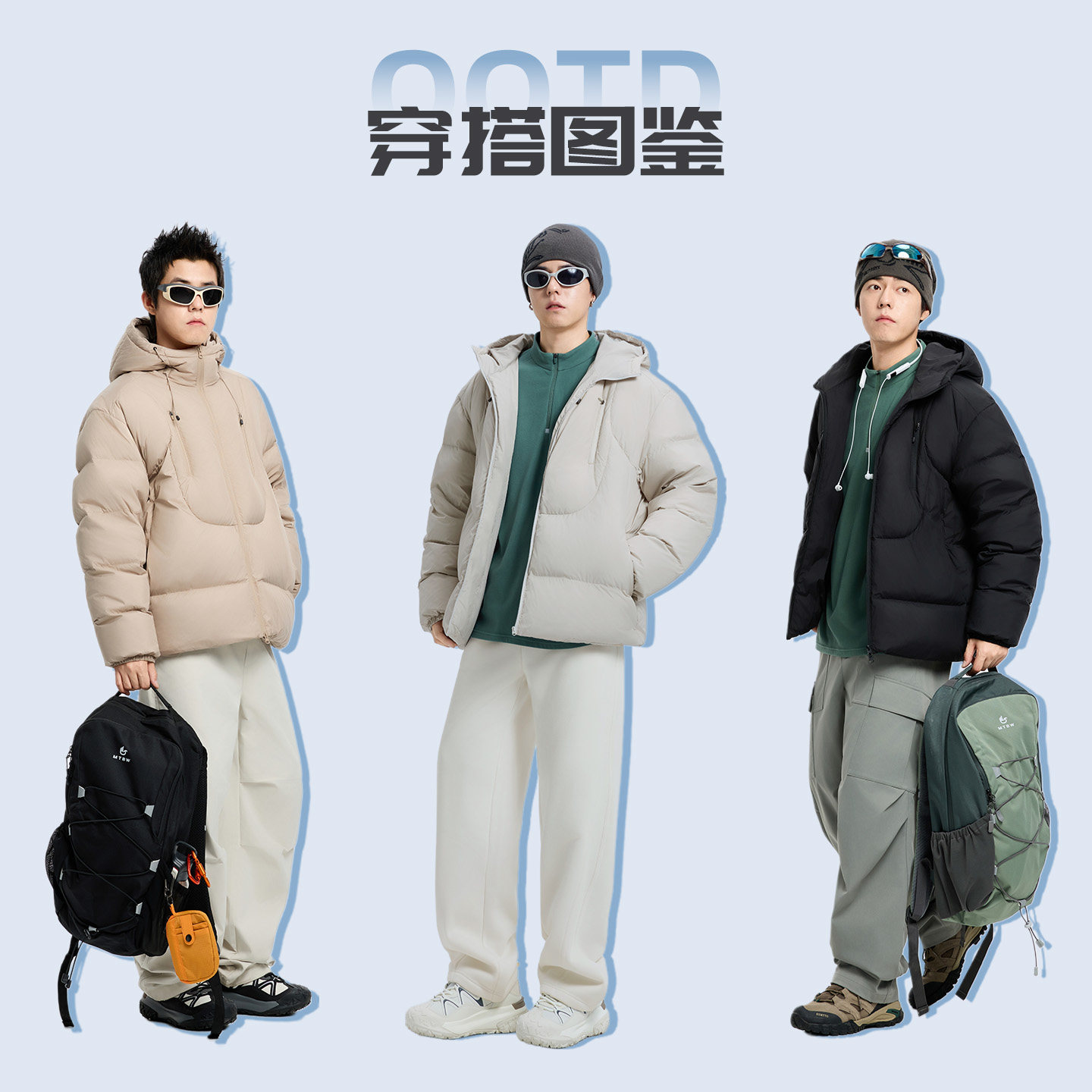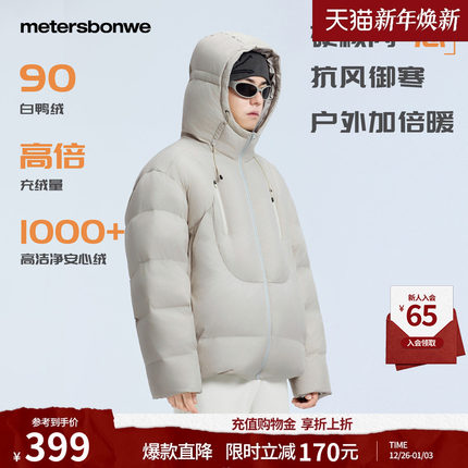 美特斯邦威羽绒服男士25冬季新款户外潮流面包连帽外套高级感夹克