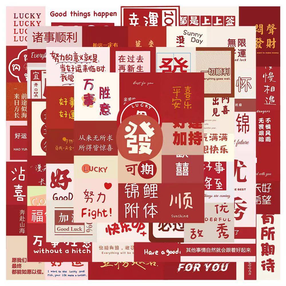 62张好事将近文字ins手账贴画创意图案韩系励志自粘装饰防水贴纸