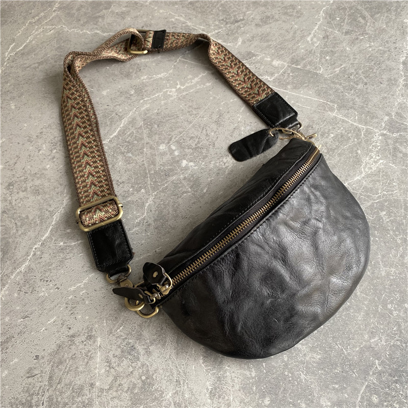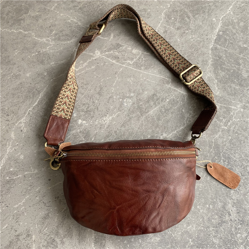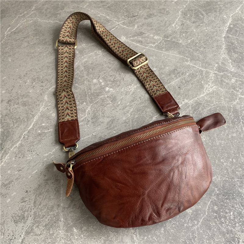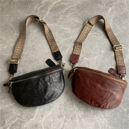 ~进口植鞣牛皮~外贸出口订单客户悔单复古男女通用胸包手抓纹腰包