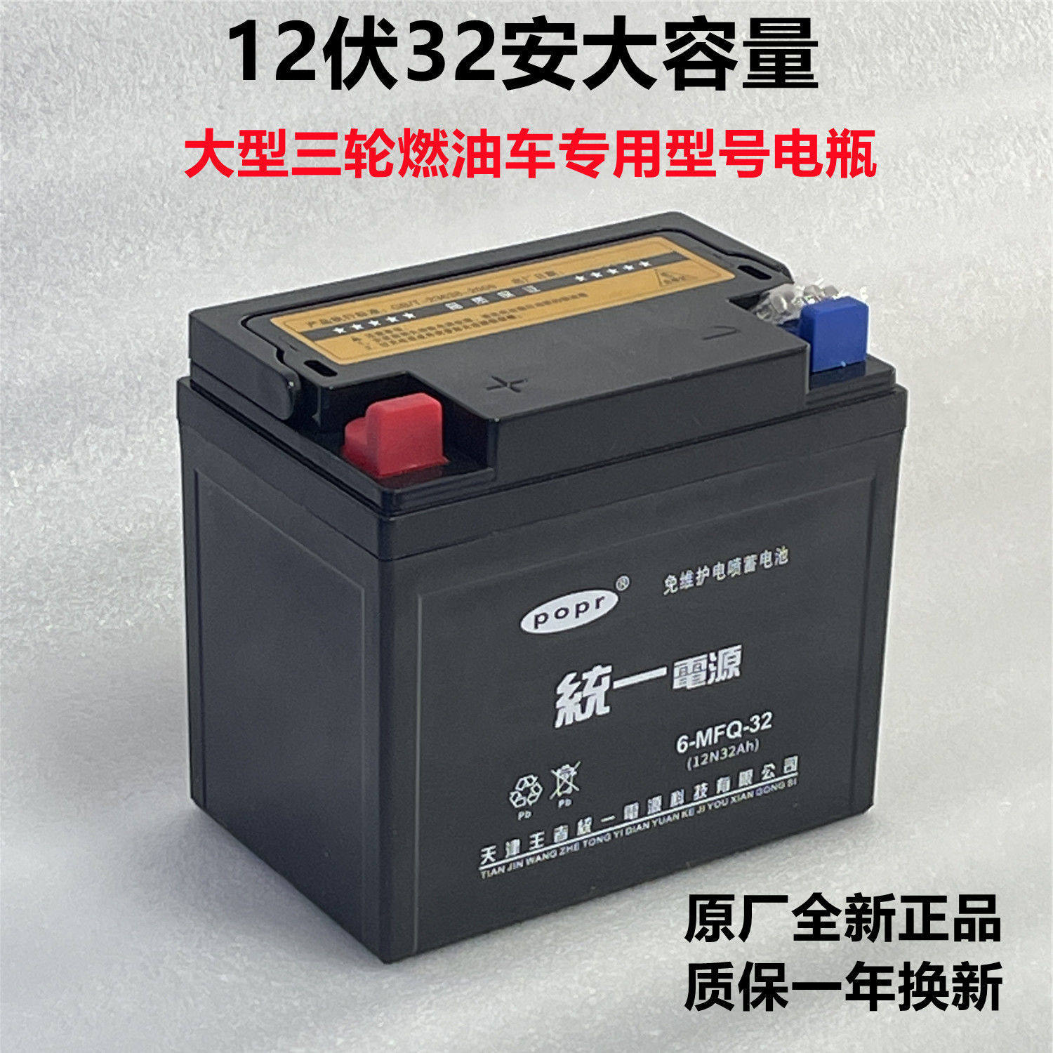 德国进口三轮摩托车电池12V32A免维护电瓶宗申福田隆鑫燃油三轮通