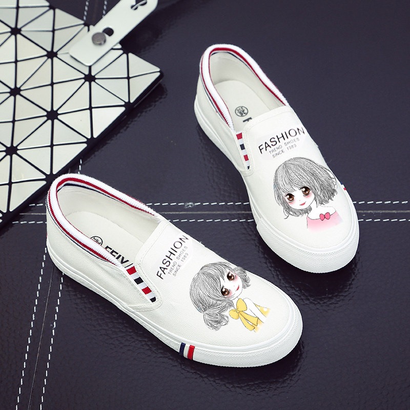涂鸦春夏卡通韩版女百搭帆布鞋