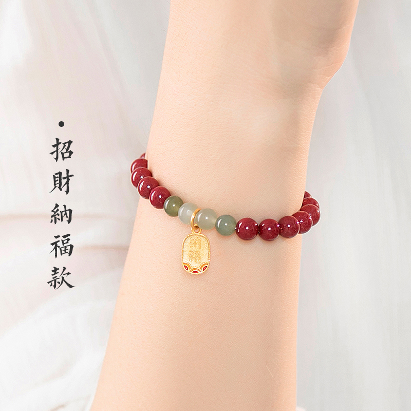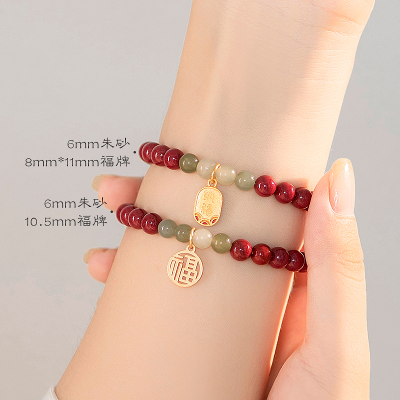 天然朱砂手串女款官方旗舰店正品招财转运珠和田玉手链本命年礼物