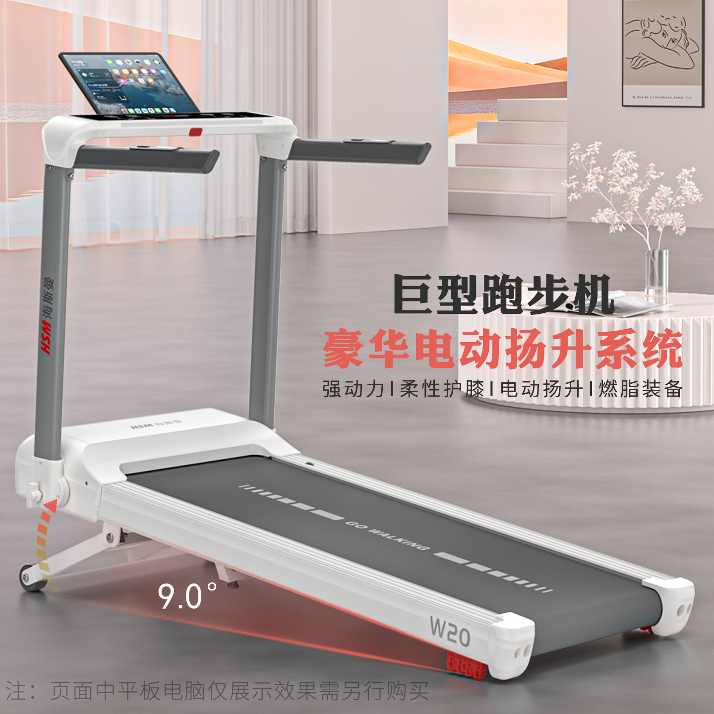 海斯曼2025新款折叠跑步机家用款小型室内爬坡机走步机健身房专用