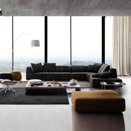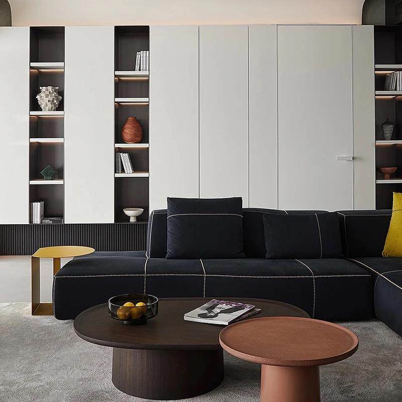 2023新款沙发休息区接待蓝灰色沙发意式极简转角模块布艺沙发客厅