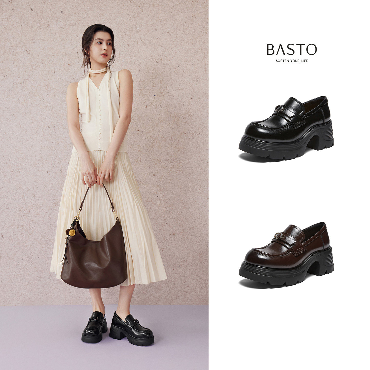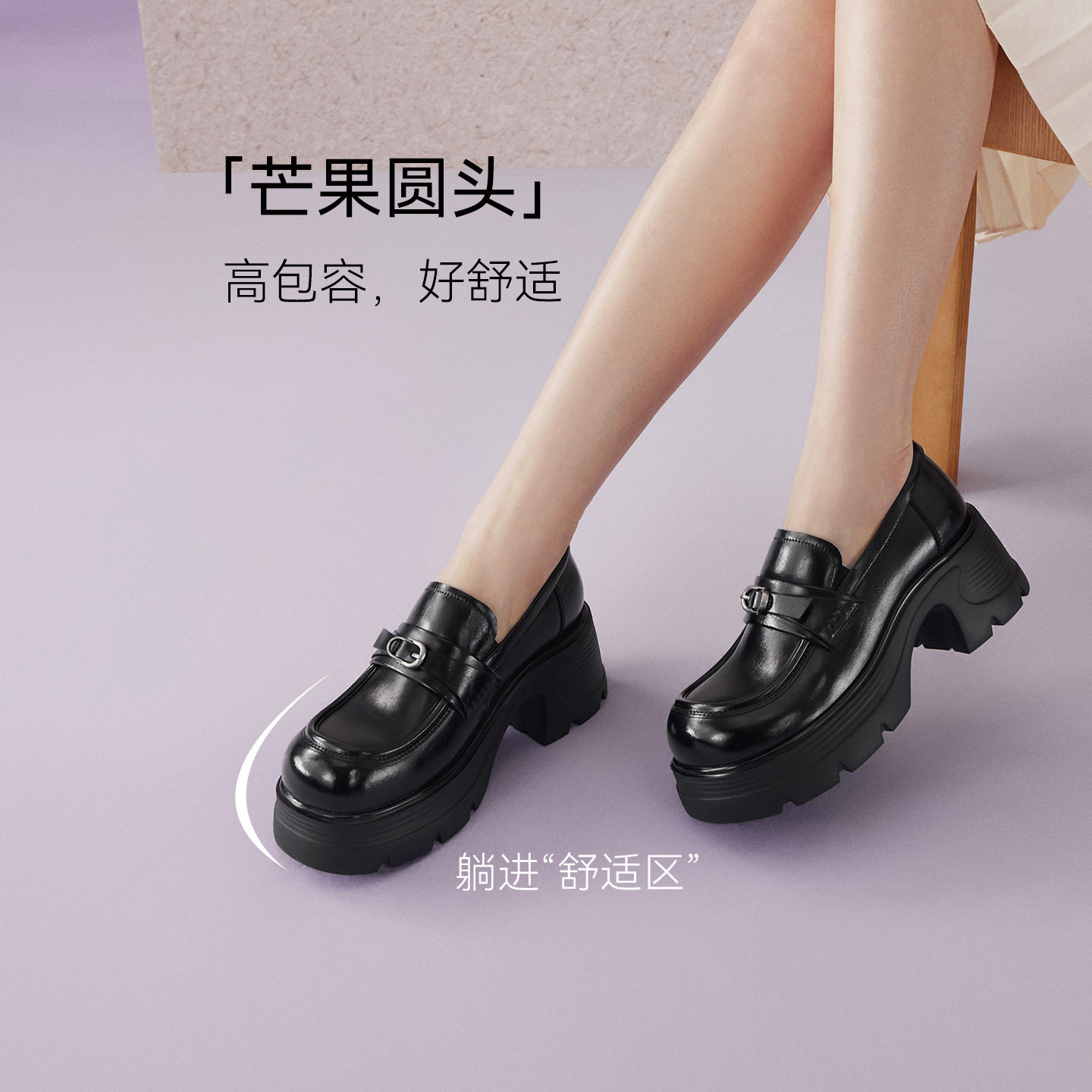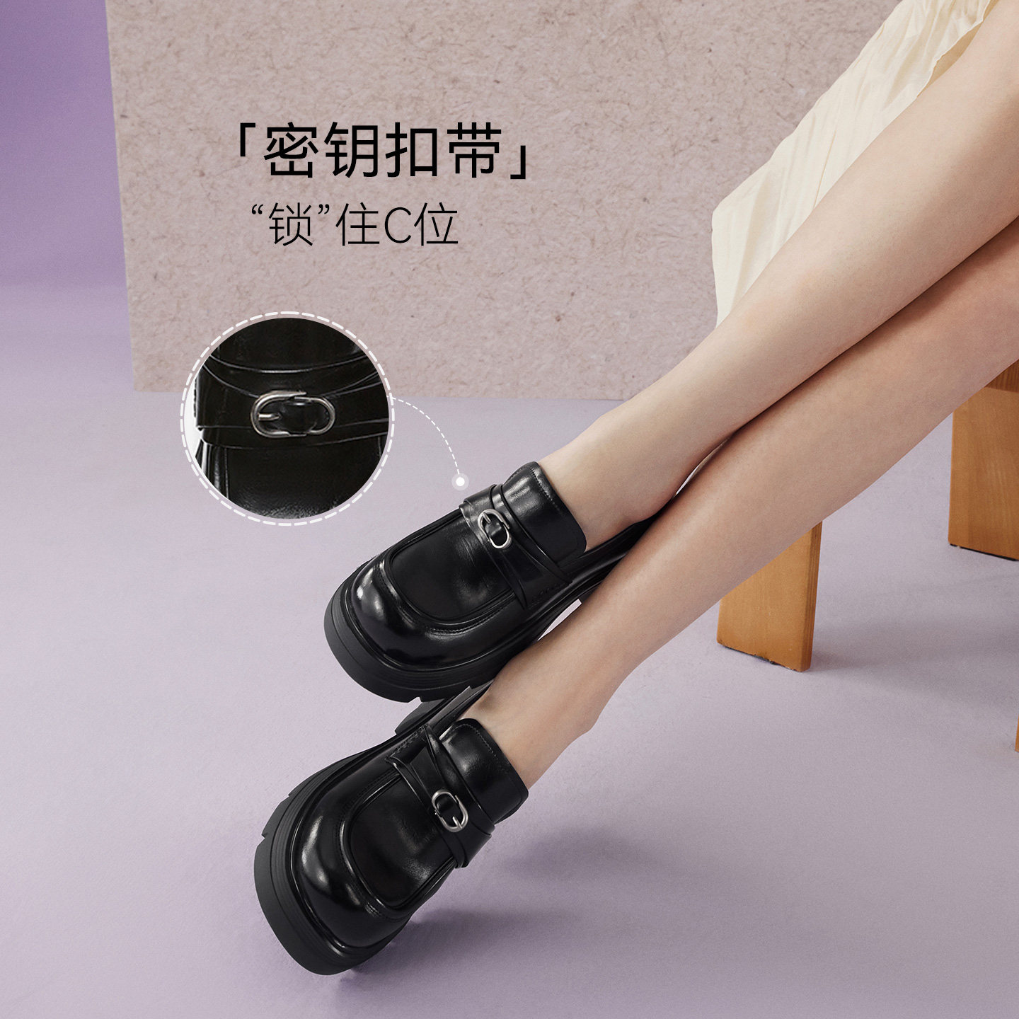 百思图2026春季新款商场同款乐福鞋简约学院风女单鞋CV339AA6