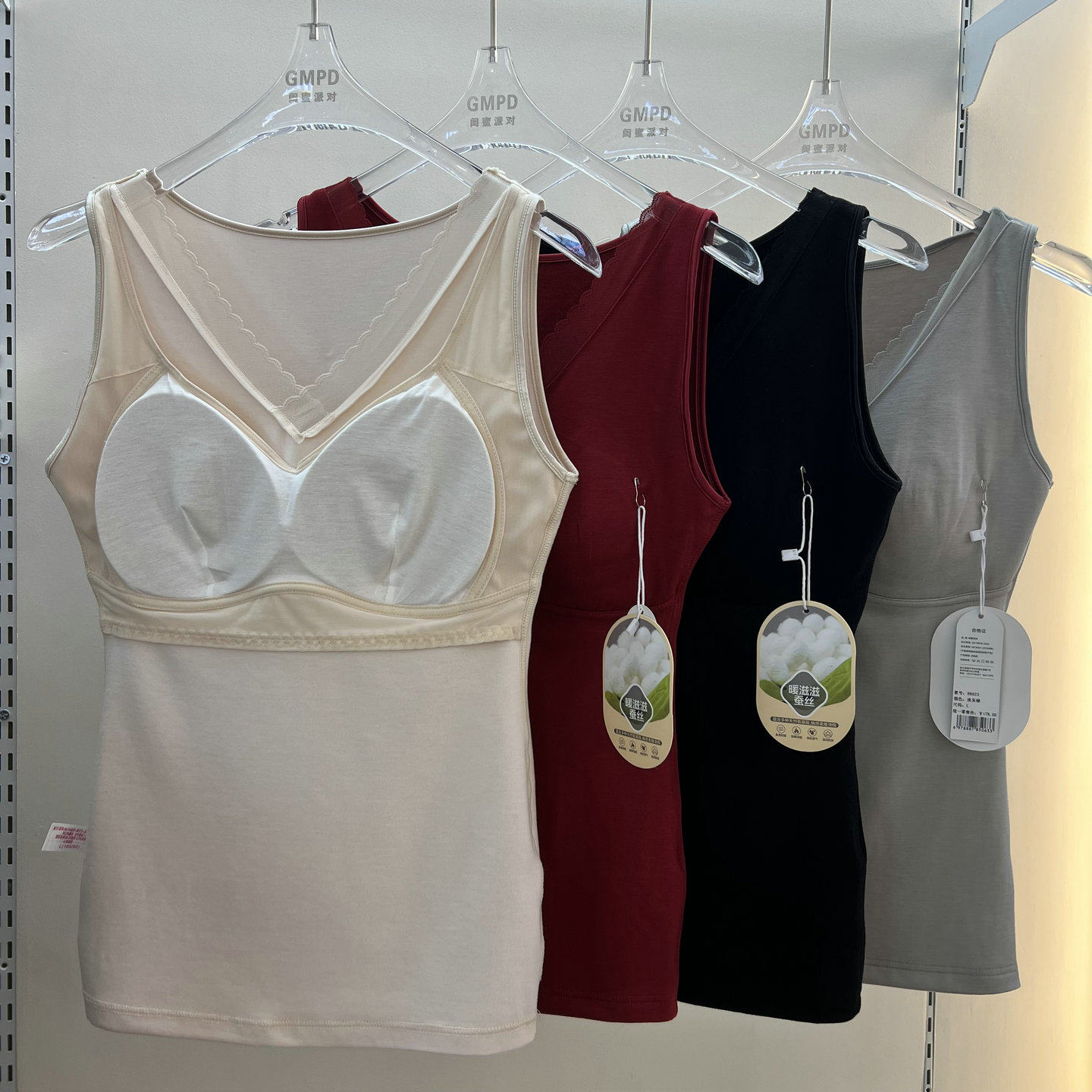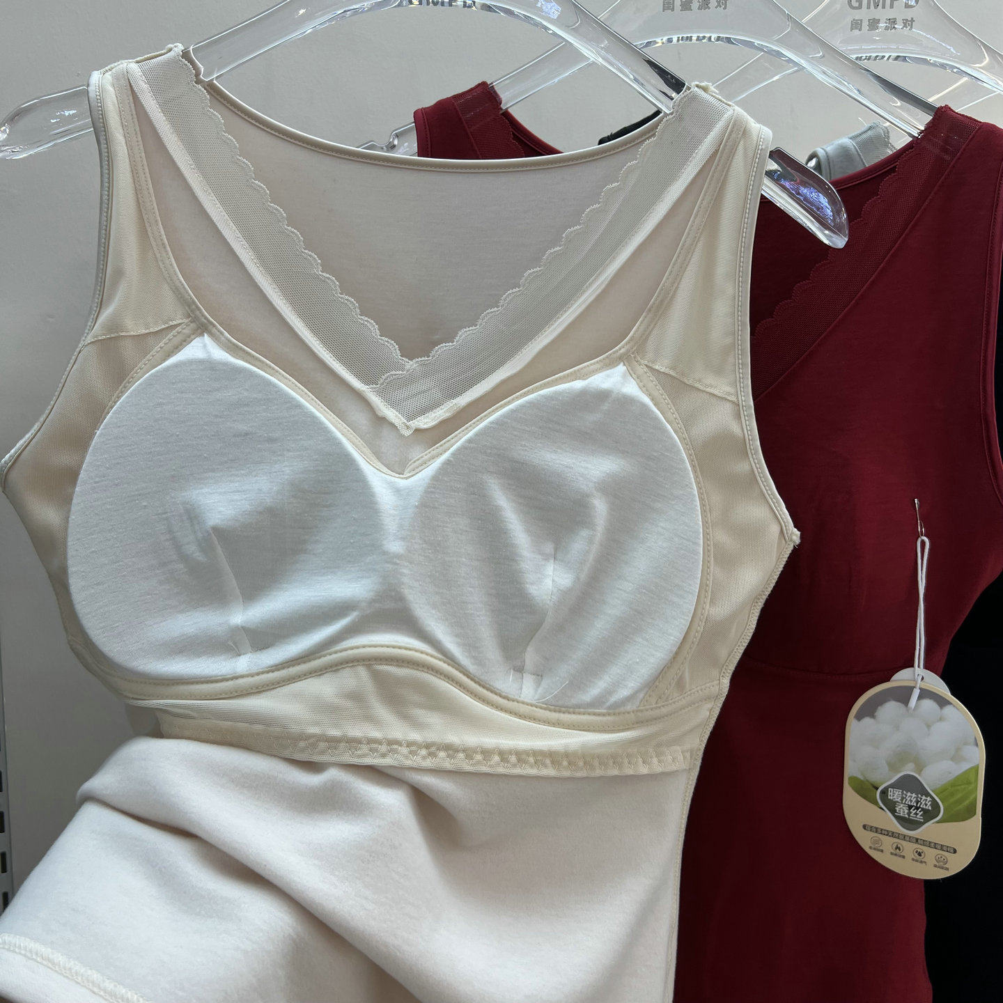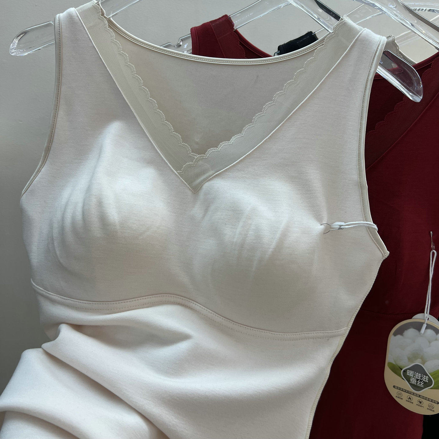 秋冬带胸垫保暖背心免穿文胸蚕丝润肤衣固定杯绵羊毛内搭塑形上衣
