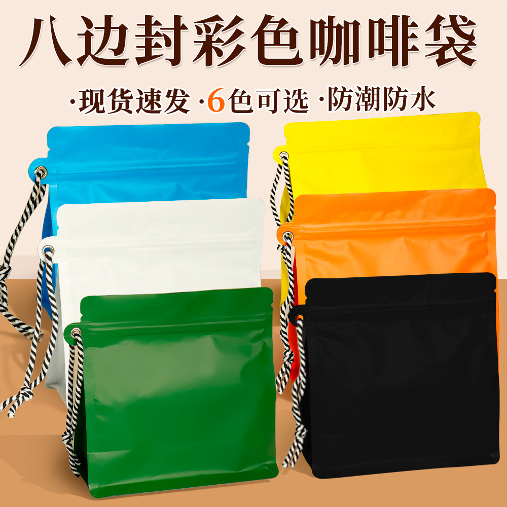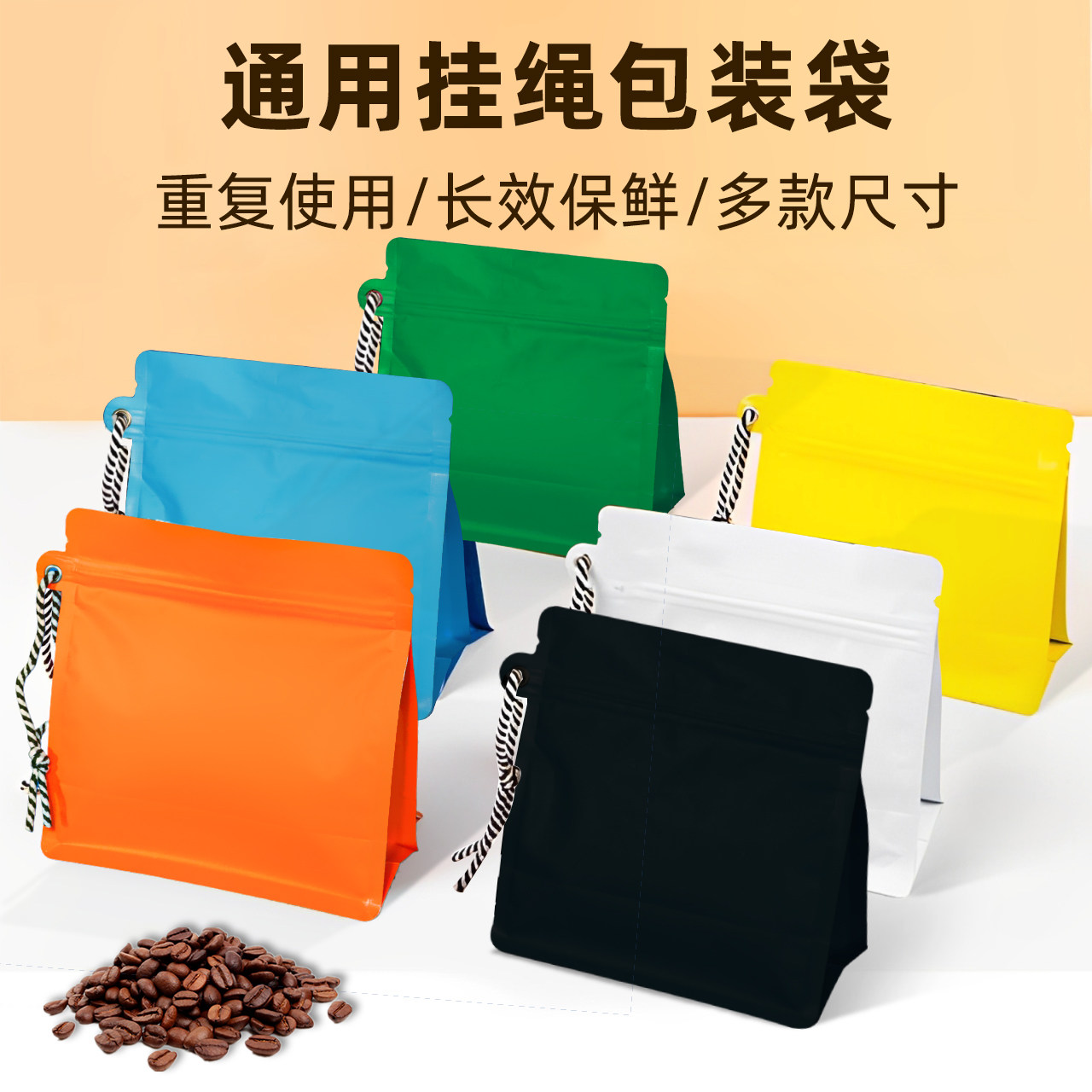 彩色挂绳咖啡袋茶叶饼干糖果包装袋八边封咖啡豆烘焙袋茶叶防潮袋