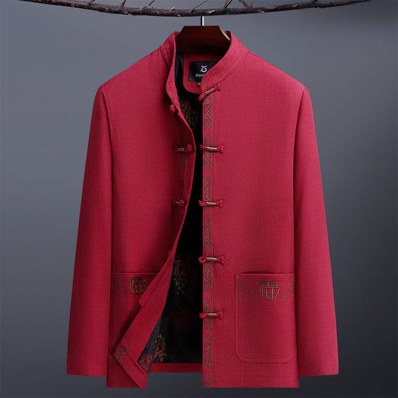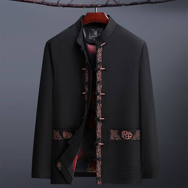 中国风唐装爸爸服装汉服春装外套中老年人男中山装秋季休闲夹克男