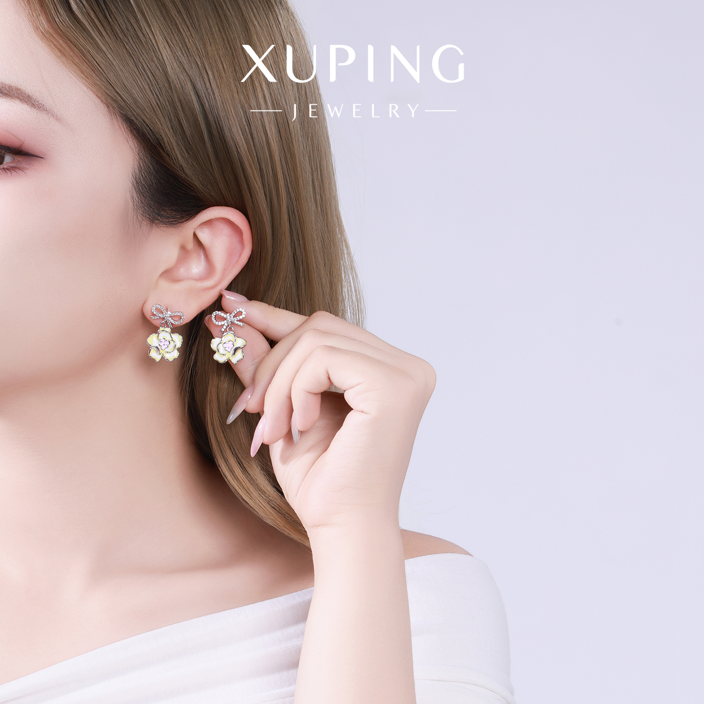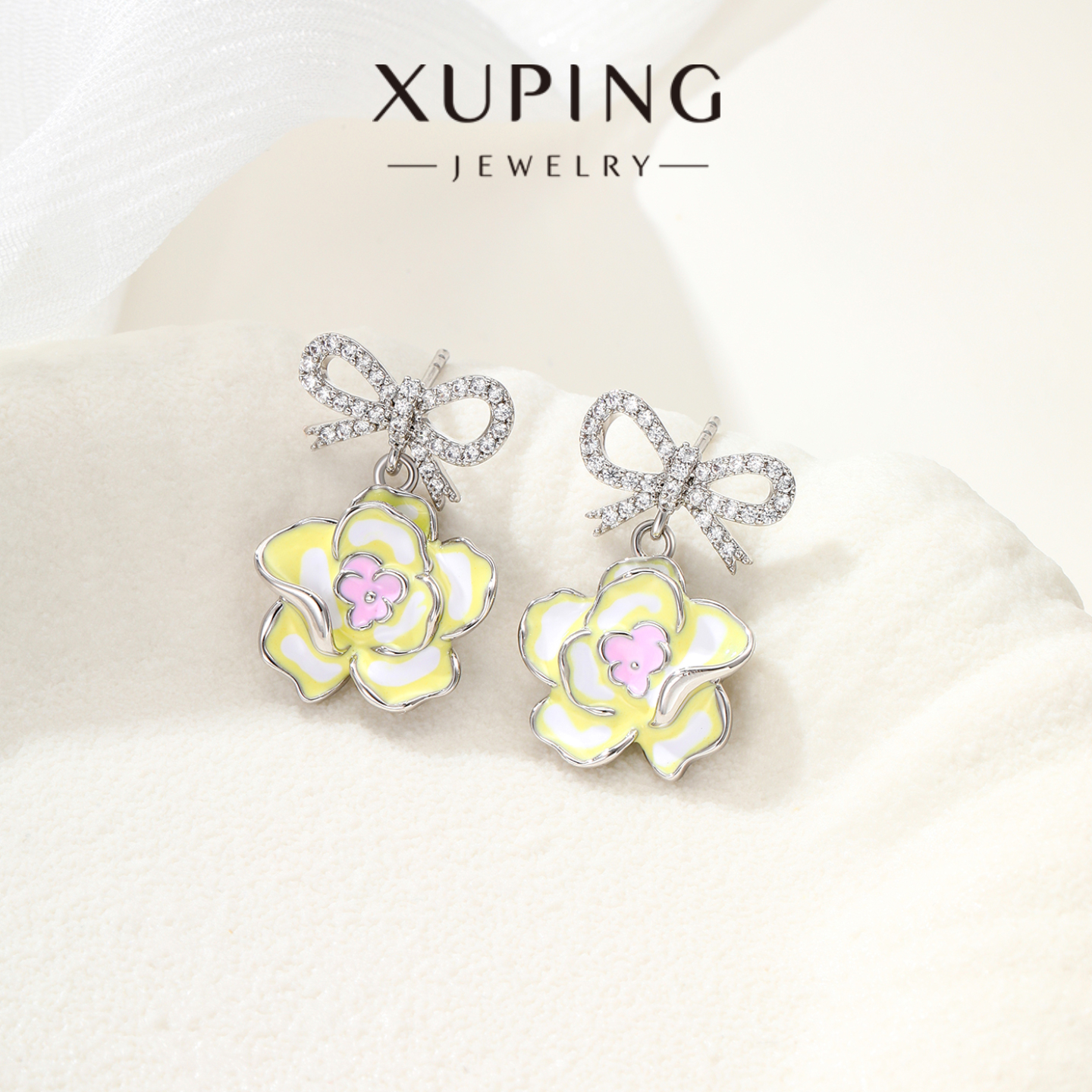 旭平春见山茶温柔奶黄山茶花蝴蝶结耳钉甜美少女感小清新气质耳饰