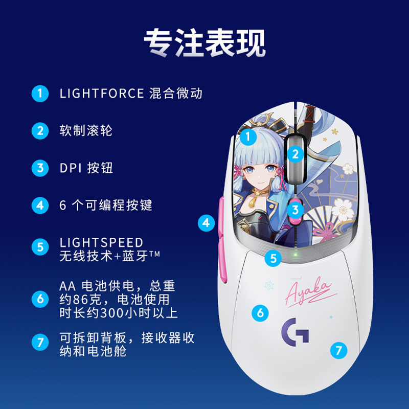 罗技G309双模无线游戏鼠标神里绫华定制款原神联名版轻量混合微动