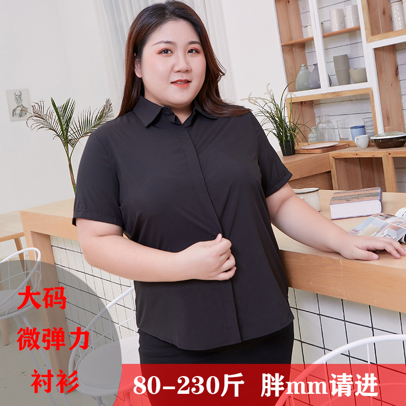 加肥加大黑色衬衫女短袖夏季职业装正装ol女士大码白衬衣微胖女生