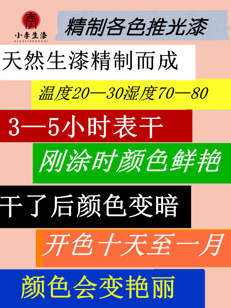 精制各色推光漆天然大漆色漆生漆土漆红色 透明 黑色推光漆100g