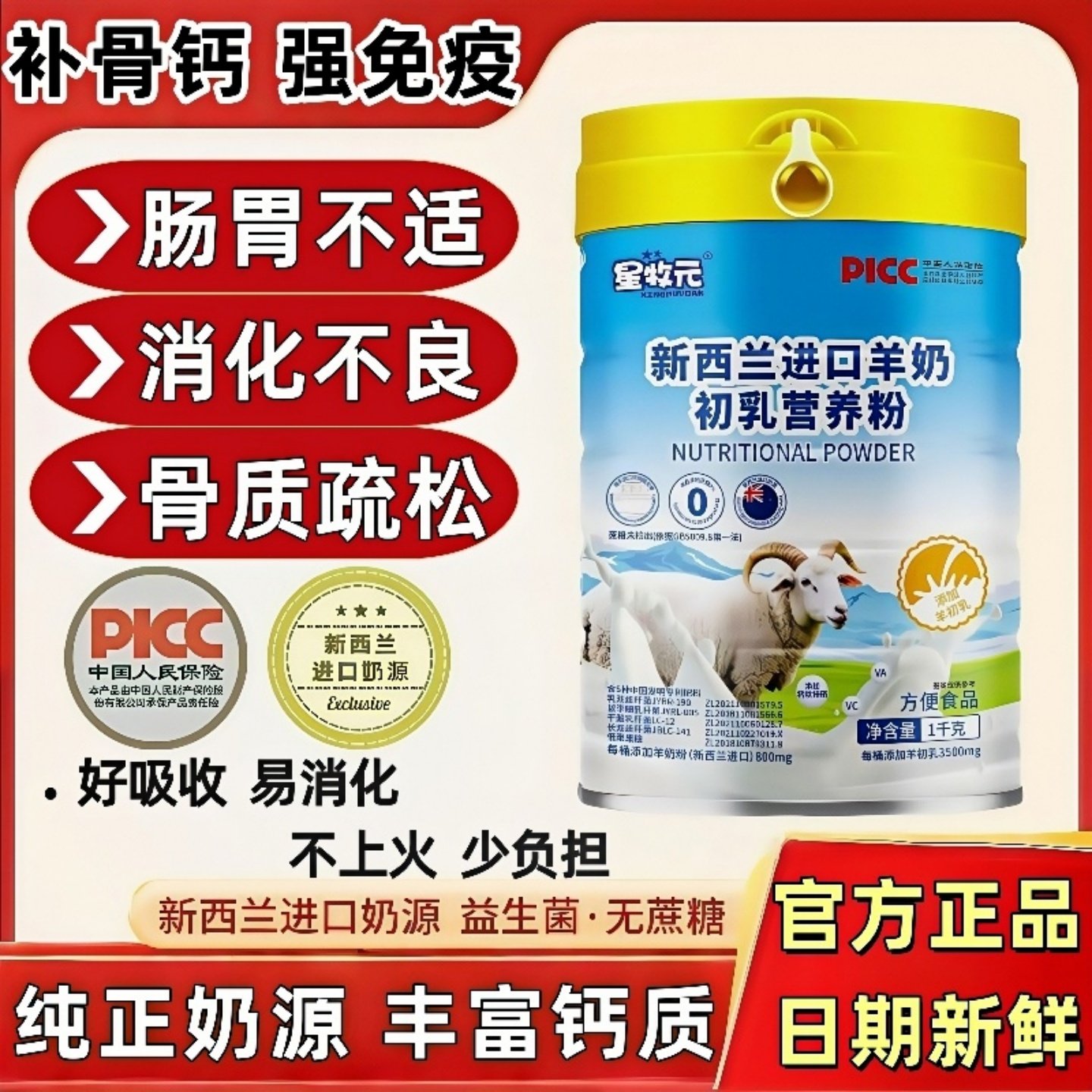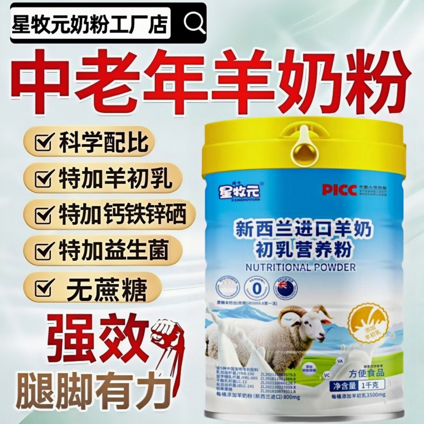 新西兰进口羊奶粉高钙富硒专利益生菌无糖中老年羊奶粉提高免疫力