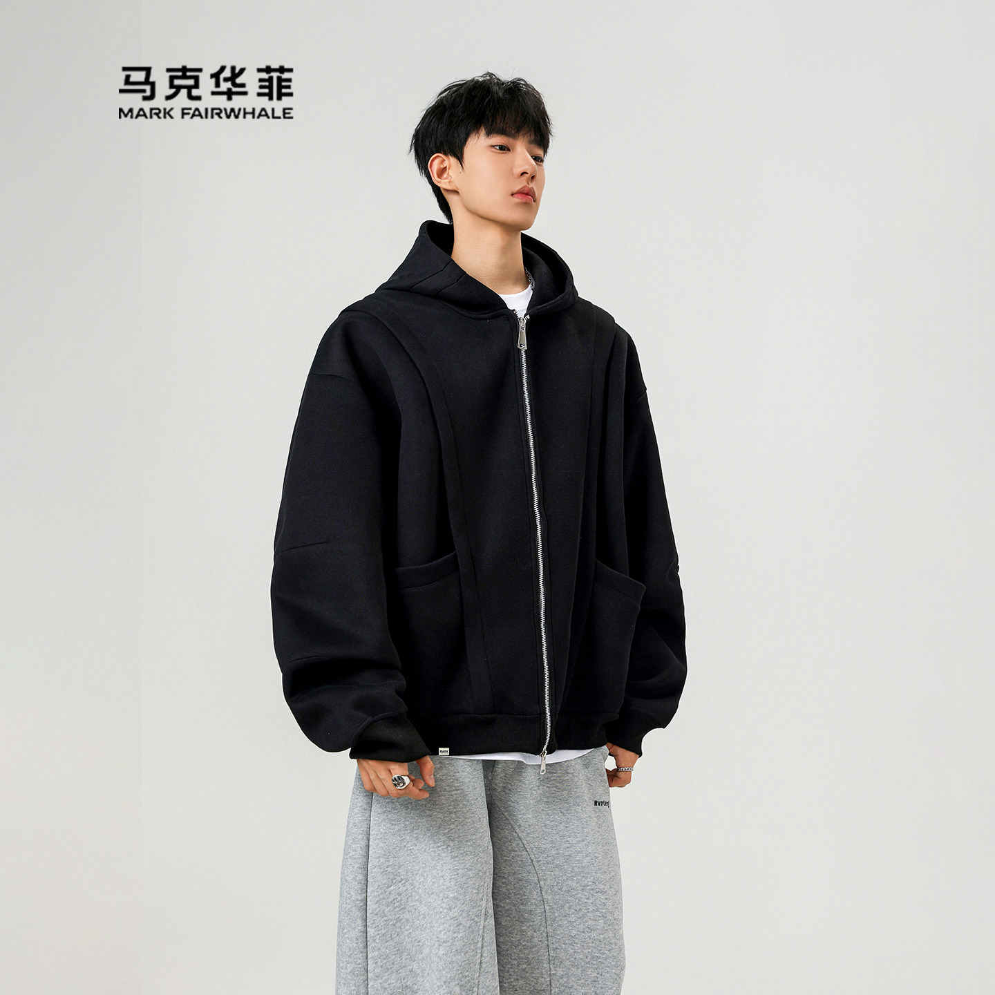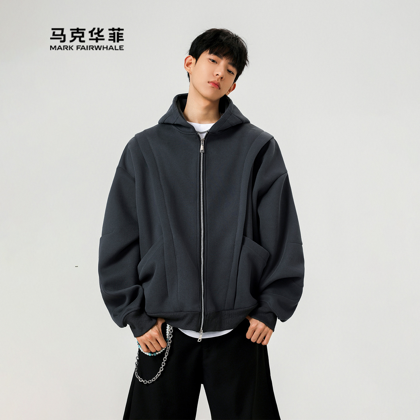 Mark Fairwhale/马克华菲灰色复古重磅连帽卫衣秋冬男装潮流开衫