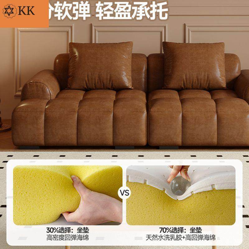 猫抓油蜡皮芙沙发客厅方家用小户公寓直排美多式块型泡复古风沙发