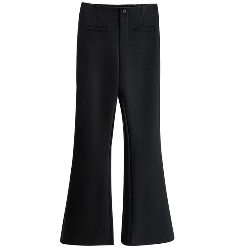 时尚百搭显腿长高腰加绒黑色长裤