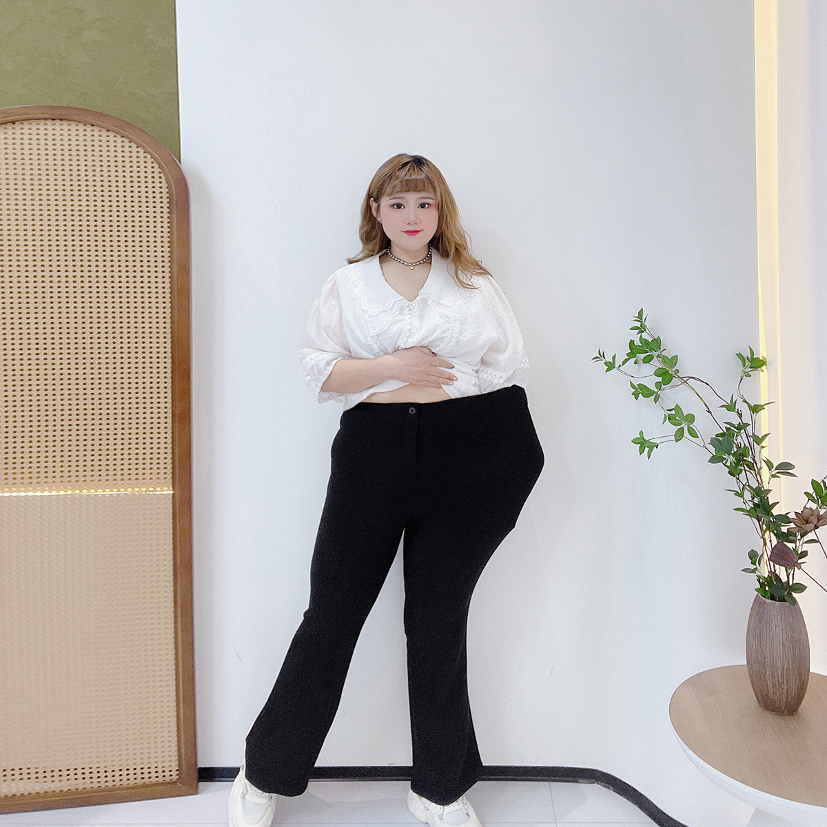 300斤高弹力显瘦西装裤子胖仙女莹莹大码女装秋冬加绒微喇休闲裤