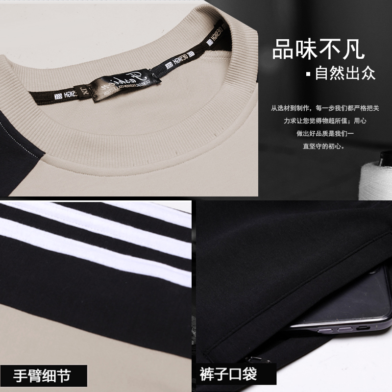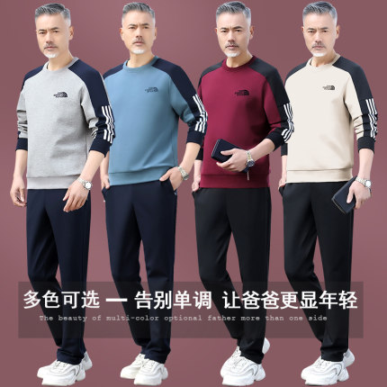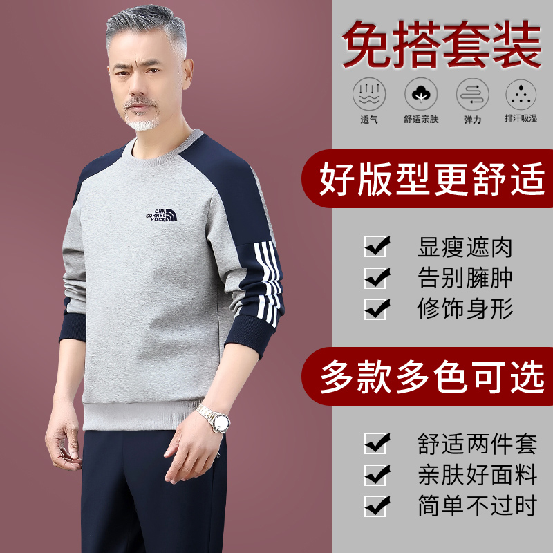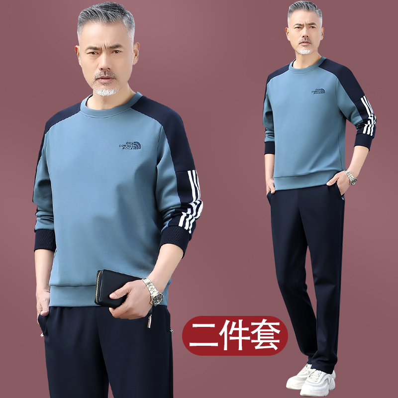 中年运动套装男士春秋爸爸休闲装圆领卫衣两件套中老年运动服装男
