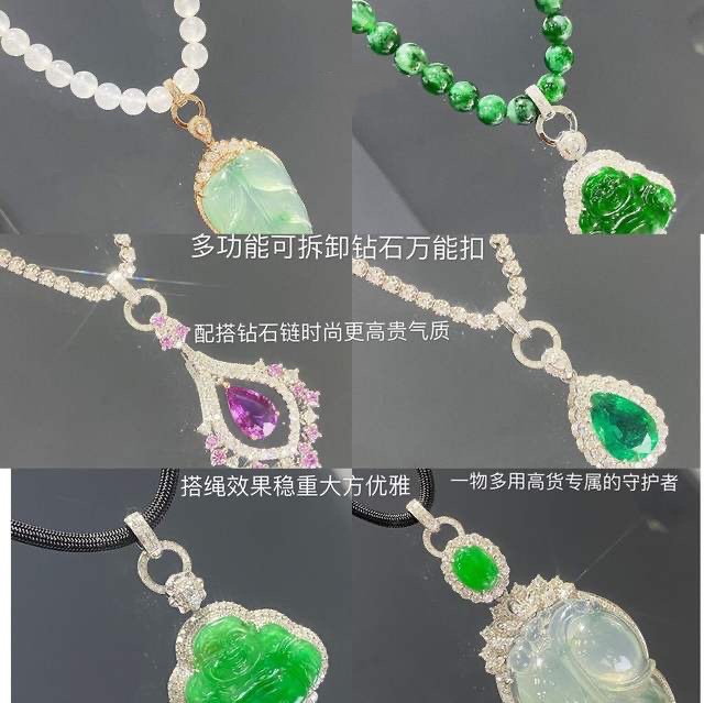 18K金多功能扣翡翠高货绳钻石项链可拆卸活动扣可搭大吊坠金扣头