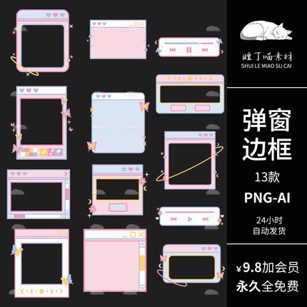 矢量AI可商用ins莫兰迪音乐播放器界面边框PNG免抠图饭圈美工素材